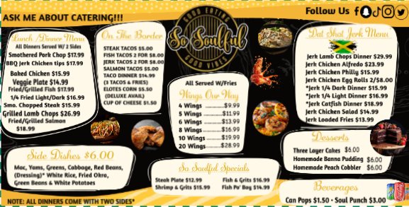With a commitment to service and community, So Soulful Eatery invites you to indulge in flavors that are truly heartwarming.