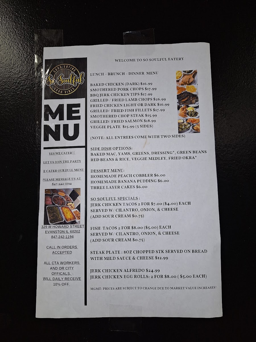 Welcome to So Soulful Eatery Evanston, where culinary warmth meets vibrant flavor at 329 W Howard St, Evanston, IL. This black-owned gem specializes in soulful dishes that reflect rich traditions. Every menu item is crafted to satisfy, with standout options that include Jerk Eggrolls and Tacos that have already earned rave reviews—like a noteworthy 9/10 from first-time visitors.
